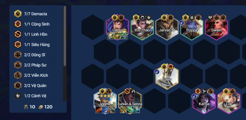 - Sau khi lấy lõi Vệ Binh Ánh Sáng ở vòng 4-2, bạn sẽ nhận ngay Lucian & Senna - tướng 5 vàng cực mạnh