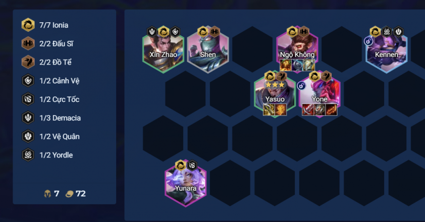 - Sau khi tích đủ 7 Ionia, tiếp tục reroll ở cấp 7 để tránh mất quá nhiều máu