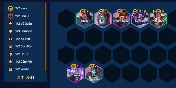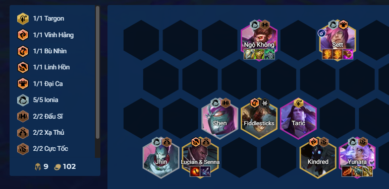 - Thứ tự ưu tiên trang bị: Yunara >>> Ngộ Không >>> Sett >>> Lucian