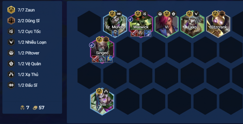 - Đội hình full Zaun cực mạnh khi có lõi công nghệ Silco Báo Thù, biến tất cả các vị tướng Zaun thành chiến binh cảm tử.