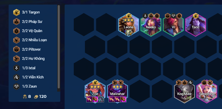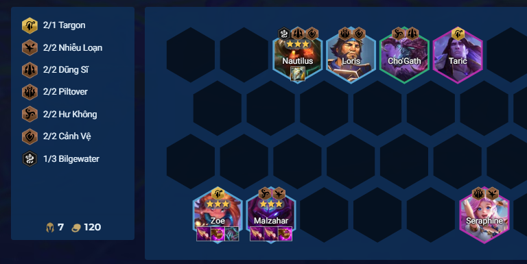 - Reroll ở cấp 7 nâng Malzahar, Zoe và Nautilus lên 3 sao