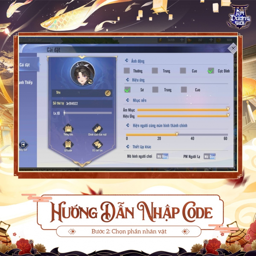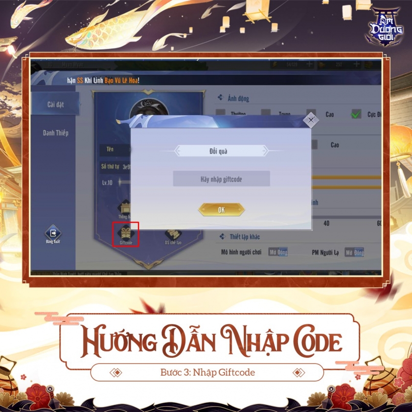 Bước 3: Chọn phần "Giftcode", nhập code Âm Dương Giới ở trên và ấn "OK"
