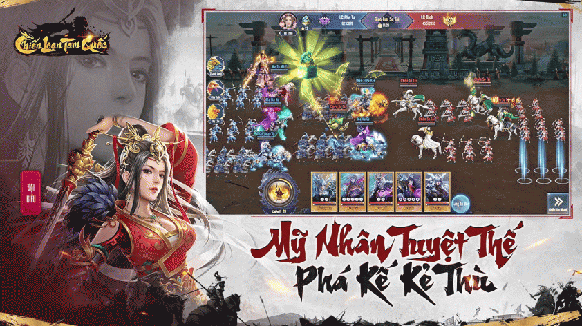 Không chỉ có chiến trường, game còn sở hữu hệ thống mỹ nhân tuyệt sắc như Điêu Thuyền, Hoàng Nguyệt Anh hay Chúc Dung. Họ không chỉ làm phong phú hậu cung, mà còn mang kỹ năng đặc biệt hỗ trợ tác chiến, giúp bạn xoay chuyển tình thế và phá kế kẻ thù.