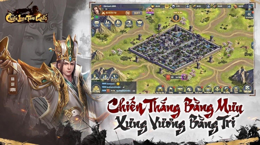 Bắt đầu từ một vùng đất nhỏ bé, bạn sẽ xây dựng thành trì, phát triển dân cư, chiêu mộ binh sĩ, tích trữ lương thảo và giao thương để củng cố thế lực. Mỗi bước đi là một nước cờ chiến lược, bởi ngoài kia, bảy thế lực đang kình địch, mỗi bên sở hữu sức mạnh và hệ thống danh tướng riêng. Từ Triệu Vân dũng mãnh đến Bàng Thống mưu trí, bạn cần linh hoạt sắp xếp đội hình, tận dụng cơ chế khắc chế để tạo lợi thế trên chiến trường.