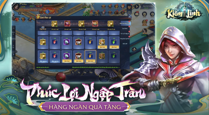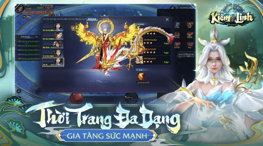 Bên cạnh chiến đấu, Kiếm Linh còn gây ấn tượng mạnh với hệ thống dị thú và thời trang đa dạng. Linh thú không chỉ đóng vai trò trợ chiến mà còn giúp biến hóa chiến thuật, hỗ trợ người chơi vượt qua những thử thách khó khăn. Trong khi đó, các bộ hóa hình như Chiến Kỵ, Thần Binh hay Thần Dực vừa mang giá trị thẩm mỹ, vừa gia tăng chỉ số sức mạnh, giúp nhân vật trở nên nổi bật giữa đám đông. Kèm theo đó là hệ thống phúc lợi hào phóng, hỗ trợ tân thủ nhanh chóng bắt nhịp và tiến xa hơn trên con đường tu tiên.