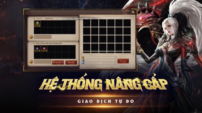 Giao dịch tự do, nâng cấp trang bị đa dạng, tạo kinh tế mở cho người chơi.