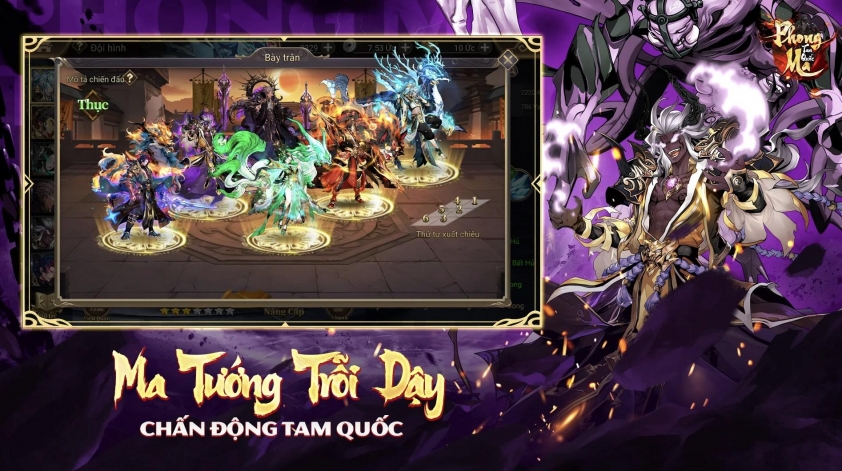 Điểm đặc biệt của Phong Ma Tam Quốc nằm ở cách tái hiện các danh tướng quen thuộc dưới hình hài hoàn toàn mới. Quan Vũ, Lữ Bố, Tào Tháo hay nhiều anh hùng khác không còn là những biểu tượng chính nghĩa quen thuộc, mà thức tỉnh trong trạng thái Ma Tướng cuồng nộ, sở hữu sức mạnh vượt thời không. Điều này mang đến cảm giác vừa quen vừa lạ, tạo nên chiều sâu cho cả cốt truyện lẫn chiến thuật xây dựng đội hình.