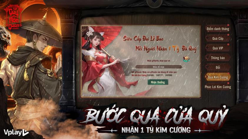 - Bước 3: Nhập code Quỷ Môn Quan và đổi thưởng