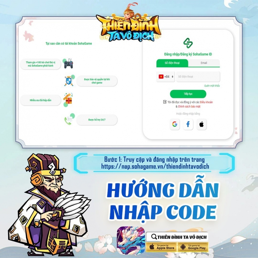 Bước 1: Đăng nhập vào website nhập code của tựa game Thiên Đình Ta Vô Địch (nap.sohagame.vn/thiendinhtavodich)