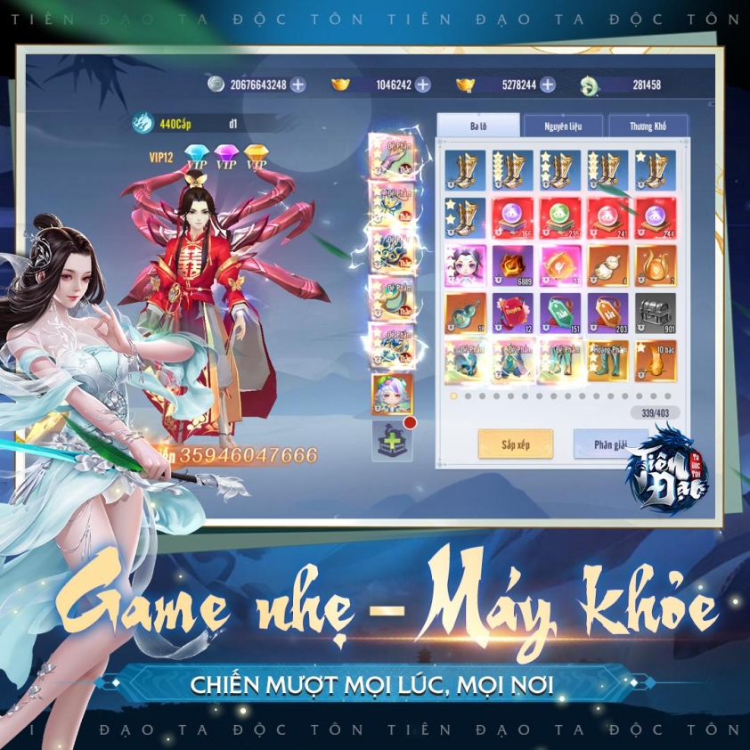 Điểm đặc biệt của Tiên Đạo Ta Độc Tôn là lối chơi vừa cày cuốc, vừa thư giãn. Hệ thống auto hỗ trợ làm nhiệm vụ và nhặt vật phẩm, giúp người chơi dễ dàng phát triển nhân vật ngay cả khi bận rộn. Các tính năng như luyện đan, đúc đồ, triệu hồi nguyên thần, thăng phẩm thần thú hay mở khóa pháp bảo đều góp phần tạo nên chiều sâu gameplay, mang đến trải nghiệm “tu tiên đích thực” cho game thủ.