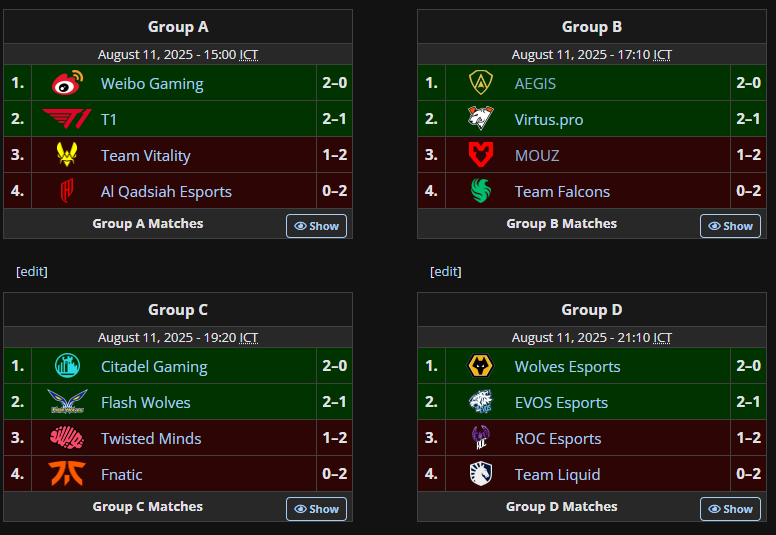 Đại diện Việt Nam - Virtus.pro sẽ chạm trán với đội đang đồng hạng 2 ở bảng B là MOUZ. Các tuyển thủ Đức đã có một trận thắng trước đội chủ nhà Team Falcons và để thua trắng trước đội đầu bảng AEGIS. Do đó, đây được đánh giá là một đối thủ khá "mềm".