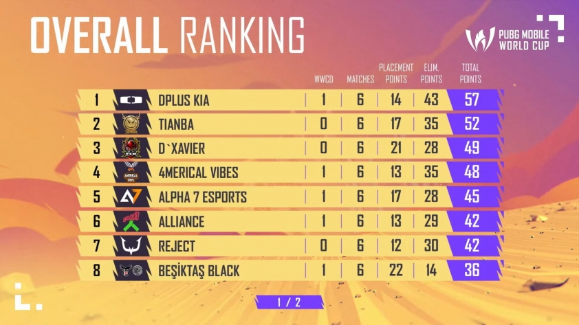 Dù không giành được WWCD nhưng đội tuyển Việt Nam có tới 2 trận top 2 và kiếm về được khá nhiều điểm sinh tồn. Tuy nhiên, số điểm hạ gục của Dingoz Xavier lại có phần khiêm tốn hơn DPLUS KIA và TIANBA, vậy nên đành tạm thời xếp sau hai đối thủ.