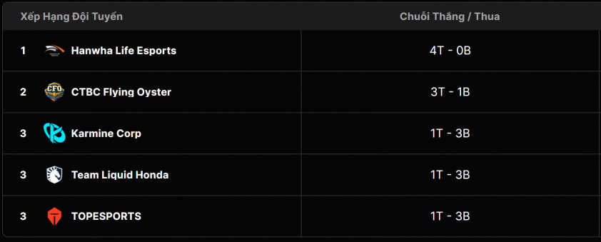 Bảng xếp hạng FST 2025 - Ngày 14/03