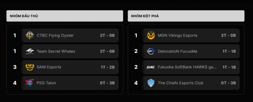 Tổng thể, MVKE bước vào ngày thi đấu với ưu thế lớn trước CHF, trong khi cặp PSG vs GAM hứa hẹn sẽ cân bằng và khó đoán hơn, khi cả hai đều có khả năng tạo đột biến nếu tận dụng tốt thế mạnh của mình.
