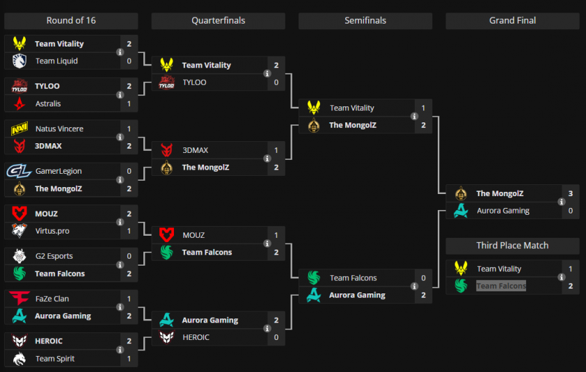 | 17:40 | The MongolZ | 3-0 | Aurora Gaming |