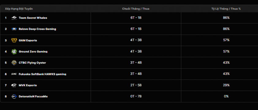 - Tất cả các trận đấu đều là Bo3