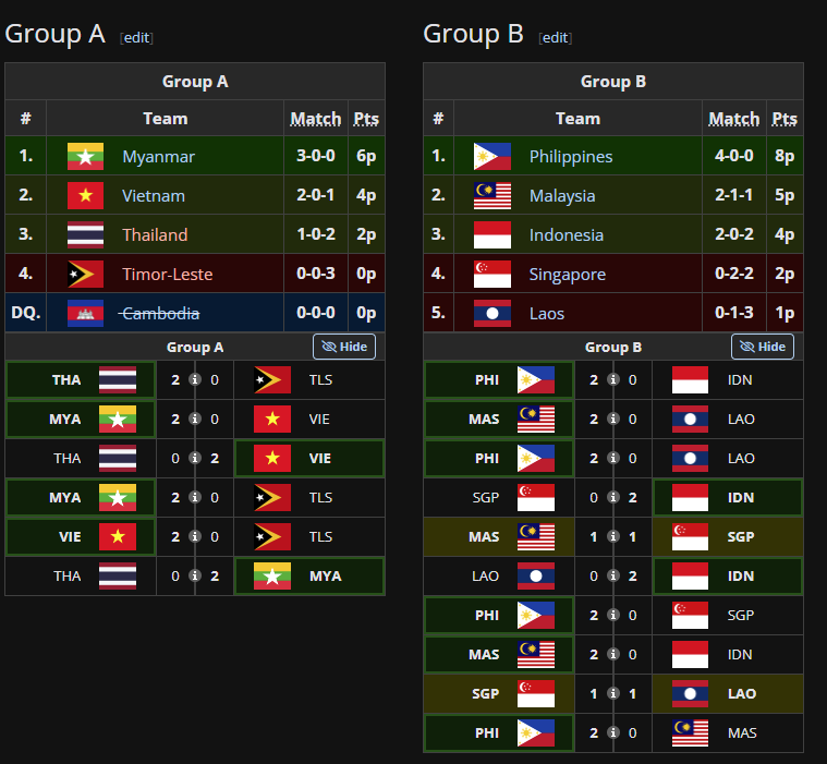 | 13/12 | 10:30 | Myanmar | 2-0 | Việt Nam |