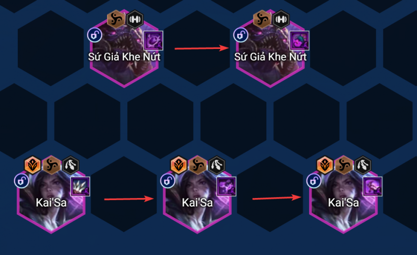 - Lý tưởng nhất là có Kai'Sa + Sứ Giả Khe Nứt 2 sao rồi mới tiếp tục eco lên cấp