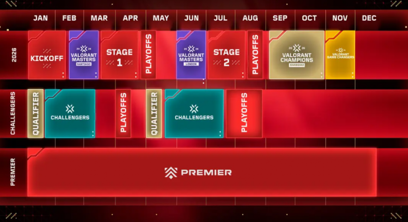 Với việc Masters Santiago, Masters London và Champions Shanghai đã chính thức được chốt lịch, cùng những cải tiến mang tính nền tảng, VCT 2026 được kỳ vọng sẽ trở thành mùa giải bùng nổ nhất trong lịch sử VALORANT Esports.