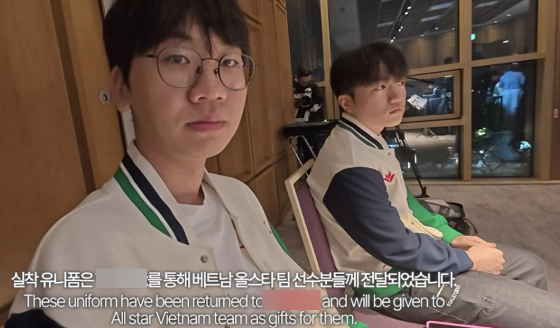 Cụ thể, trong video hậu trường được đăng tải trên kênh YouTube của T1, phần phụ đề tiếng Anh xuất hiện nội dung cho biết những bộ áo thi đấu mà các tuyển thủ T1 mặc trong trận giao hữu sẽ được thu lại và trao tặng cho đội All Star Việt Nam như một món quà lưu niệm. Chi tiết này nhanh chóng được lan truyền và xem như ‘bằng chứng’ cho thấy Thầy Giáo Ba cùng các cựu tuyển thủ Việt Nam đã nhận được áo từ phía T1.