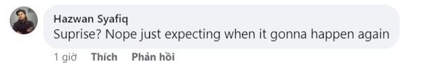 CĐV có tên Hazwan Syafiq cũng chỉ ra rằng: "Có gì đáng ngạc nhiên ư? Không, chỉ là hãy chờ xem khi nào nó xảy ra lần nữa".
