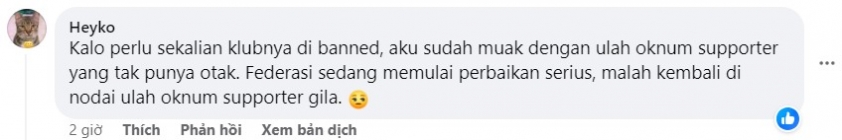 Tài khoản có nickname Heyko viết: "Nếu cần thiết, nên cấm luôn cả CLB. Tôi mệt mỏi với những CĐV không có não không giữ được bình tĩnh.