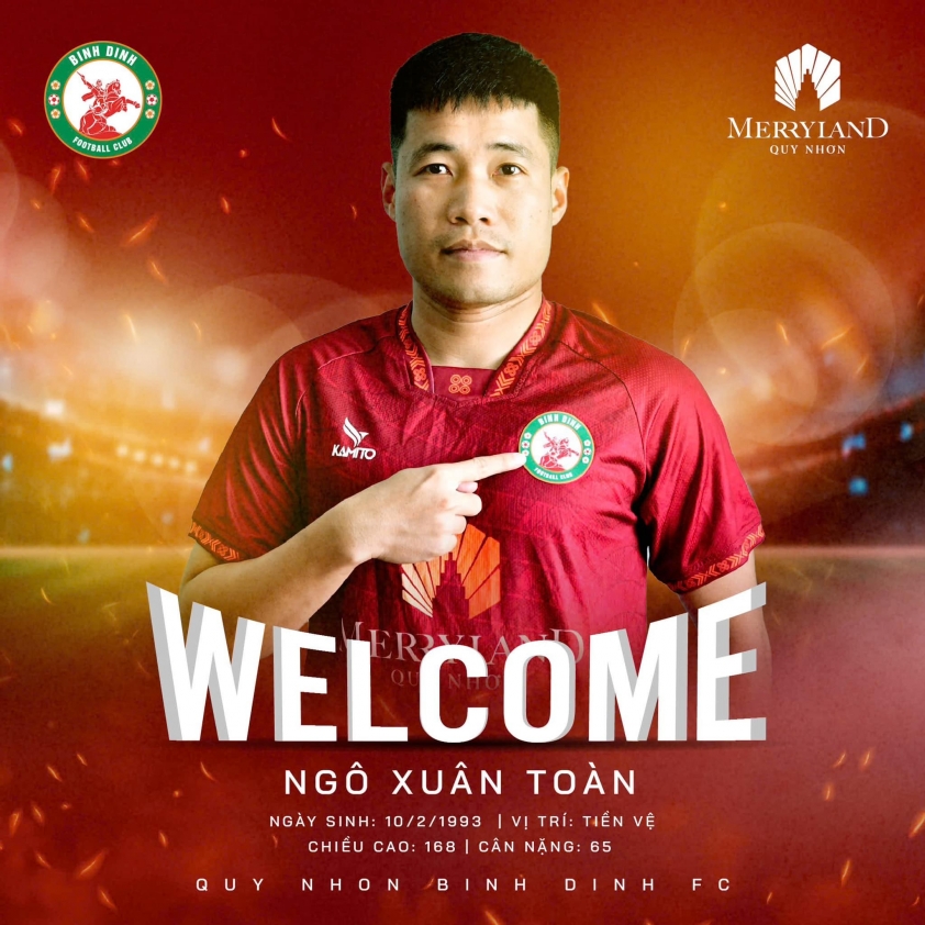 "Chào mừng tiền vệ Ngô Xuân Toàn gia nhập CLB Quy Nhơn Bình Định. Chúc Ngô Xuân Toàn thi đấu bứt phá và gặt hái nhiều thành công cùng đội bóng đất Võ trong mùa giải mới", đội bóng đất Võ đăng tải trên fanpage chính thức của CLB.