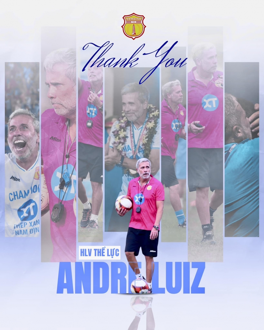 "Xin cảm ơn ông Andre Luiz. Cảm ơn những đóng góp của HLV thể lực Andre Luiz trong thời gian qua. Ông đã là một phần lịch sử của Thép Xanh Nam Định khi cùng đội bóng giành chức vô địch V-League 2023/24.