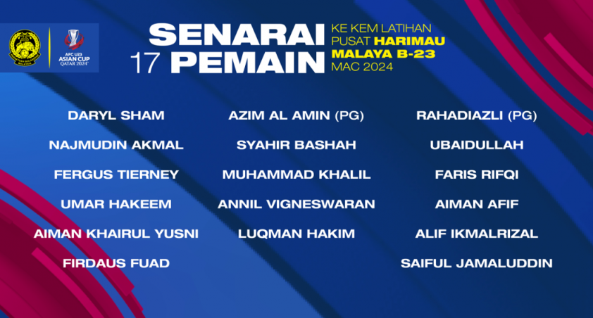 Sở dĩ, danh sách này chỉ có 17 cầu thủ bởi 11 cầu thủ khác thuộc lứa U23 đã được đôn lên ĐTQG Malaysia, nhằm chuẩn bị cho 2 trận đấu gặp Oman tại Vòng loại thứ 2 World Cup 2026 khu vực châu Á.