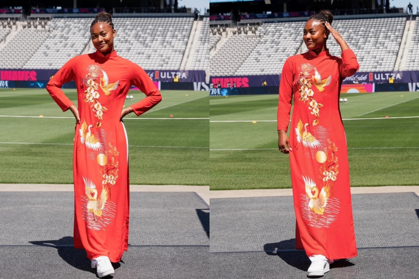 Mới đây, fanpage chính thức của CLB San Diego Wave (giải VĐQG nữ Mỹ) đã thu hút sự chú ý khi đăng tải hình ảnh ngôi sao tiền đạo Jaedyn Shaw khoác trên mình tà áo dài truyền thống của Việt Nam.