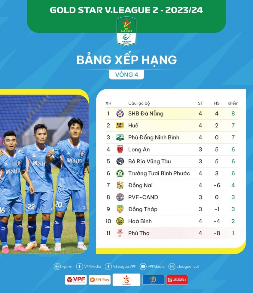 2 tân binh giải đấu là CLB Đồng Tháp và Đồng Nai có những cảm xúc trái ngược ở vòng 4. CLB Đồng Tháp có chiến thắng ấn tượng 2-0 trước CLB Hòa Bình để thoát lên khỏi vị trí cuối.