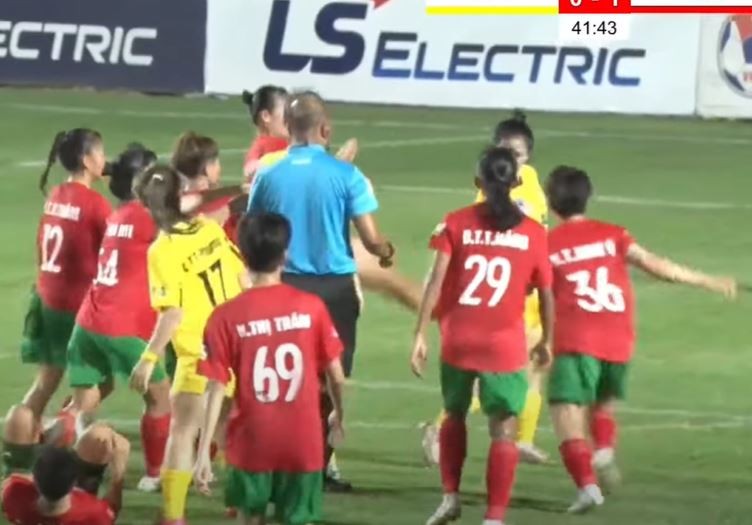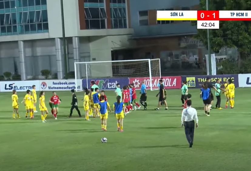 Phút 42, Lò Thị So phía Sơn La có tình huống ham bóng trên mức cần thiết. Sau va chạm, các cầu thủ không giữ được "cái đầu lạnh" lao vào ẩu đả khiến trận đấu bị gián đoạn.