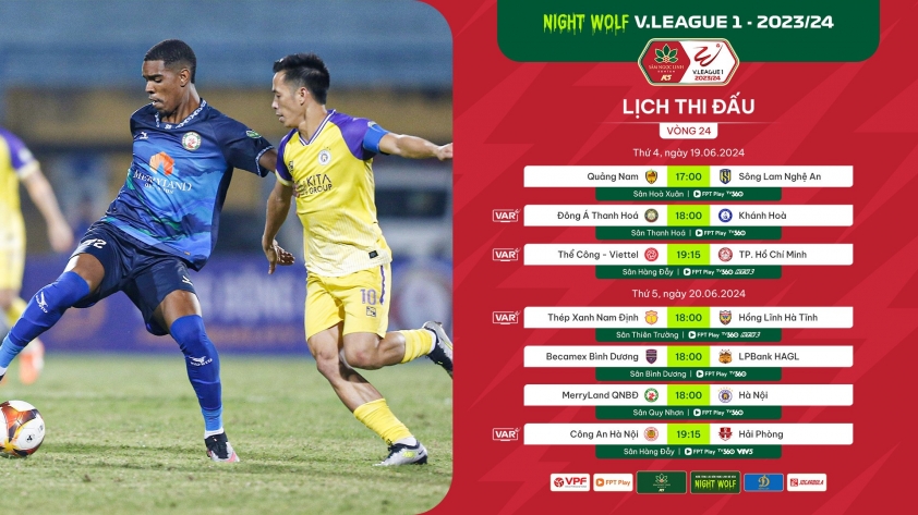 3 trận đầu tiên của vòng 24 diễn ra vào Thứ 4 (19/6)