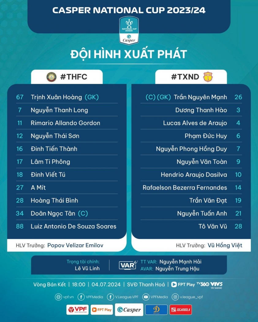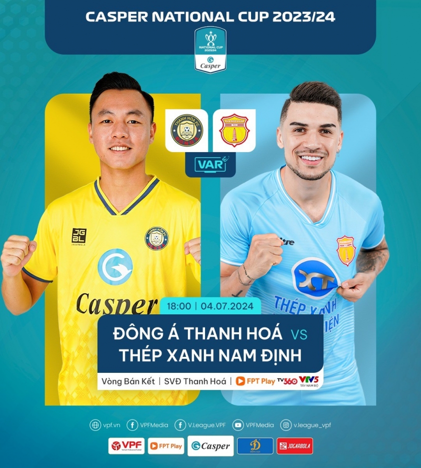 Chiều 4/7, tân vương V-League CLB Nam Định tới làm khách trước Thanh Hóa ở bán kết Cúp Quốc gia 2023/24. Thầy trò HLV Vũ Hồng Việt quyết tâm thắng lợi để giành cú đúp danh hiệu mùa này.