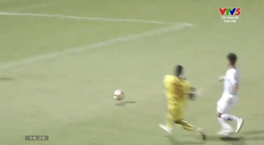 Từ pha căng ngang cánh trái, Thanh Long đưa bóng về lưới nhà Thanh Hóa. Tuy nhiên, sau khi kiểm tra VAR, trọng tài cho rằng Rafaelson đã phạm lỗi với hậu vệ chủ nhà.