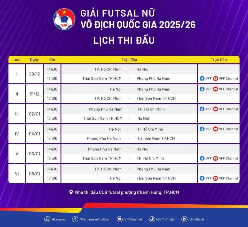 Chiều 27/12, tại phòng họp Nhà thi đấu CLB Futsal phường Chánh Hưng (TP Hồ Chí Minh), Ban tổ chức Giải Futsal Nữ Vô địch quốc gia 2025 đã tiến hành họp kỹ thuật trước thềm giải đấu.