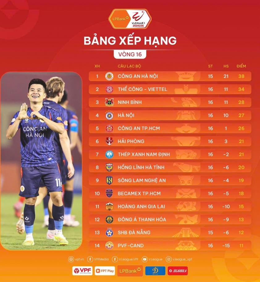 Ở vòng 16 vừa qua, Nam Định đánh bại Thanh Hóa với tỉ số tối thiểu để nối dài chuỗi thắng. Dù chiến thắng không quá cách biệt, kết quả này vẫn mang ý nghĩa quan trọng khi giúp đội bóng của HLV Vũ Hồng Việt duy trì sự tự tin và tích lũy thêm 3 điểm quý giá trong cuộc đua tại giải quốc nội.