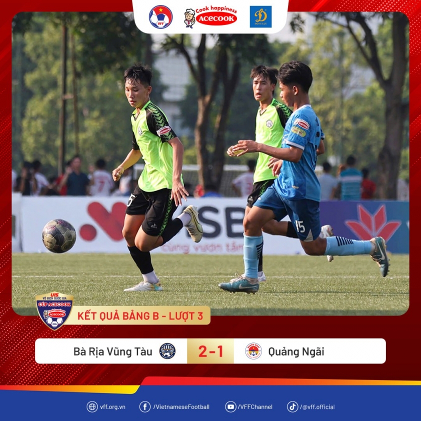 Bà Rịa Vũng Tàu vừa đánh bại Quảng Ngãi và trở thành đội đầu tiên giành chiến thắng cả 3 trận đấu ở vòng bảng VCK giải VĐ U15 Quốc gia.