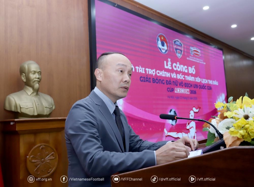 Chiều 23/12, Lễ công bố Nhà tài trợ chính và Bốc thăm xếp lịch thi đấu Giải bóng đá Nữ Vô địch U19 quốc gia – Cúp ACECOOK 2026 đã diễn ra tại Trụ sở LĐBĐ Việt Nam.