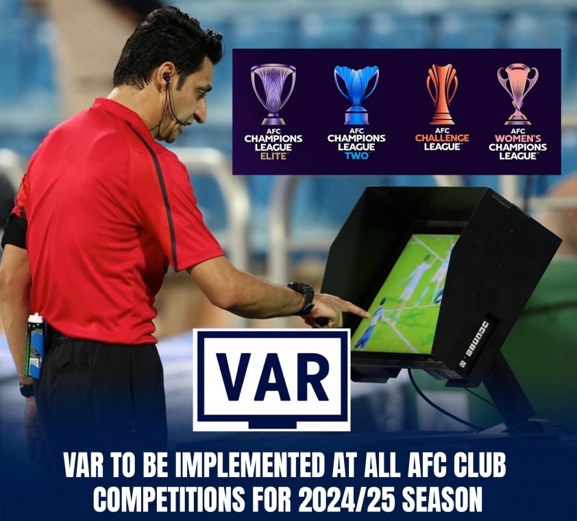 VAR cũng sẽ xuất hiện ở tất cả các giải đấu của AFC cấp CLB mùa giải 2024/2025. Với AFC Champions League Elite, VAR xuất hiện từ vòng bảng. Với AFC Women's Champions League, VAR xuất hiện từ vòng bán kết. AFC Champions League Two là giải đấu CLB Việt Nam được tham dự, VAR có từ vòng knock out và AFC Challenge League chỉ có VAR ở chung kết.