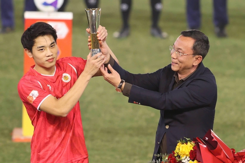 Trước trận đấu giữa CLB CAHN gặp CLB Ninh Bình, ông Trần Quốc Tuấn – Ủy viên Ủy ban Thi đấu FIFA cấp đội tuyển quốc gia nhiệm kỳ 2025-2029, Ủy viên Thường vụ AFC, Chủ tịch Ủy ban Thi đấu AFC, Chủ tịch LĐBĐVN đã trao giải thưởng cho cầu thủ Nguyễn Đình Bắc.