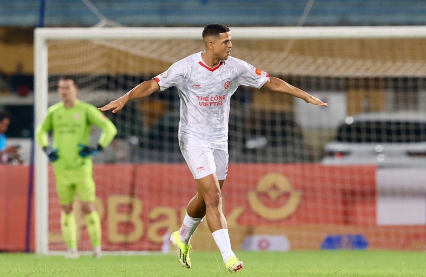Cú đánh đầu không có điểm chê của Lucao. Tân binh của Viettel chọn vị trí và đón đường tạt rất chính xác của đồng đội.