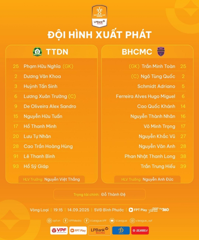 - Thời gian thi đấu: 19h15 ngày 14/9/2025.