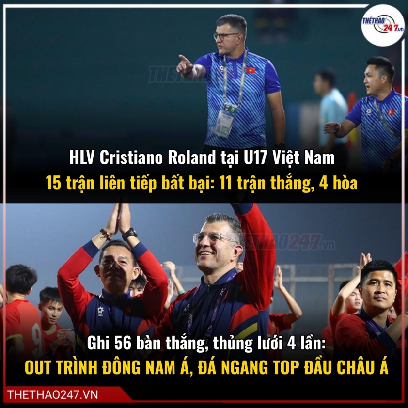 Dưới sự dẫn dắt của HLV Cristiano Roland, U17 Việt Nam đang duy trì chuỗi 15 trận bất bại đầy ấn tượng kéo dài qua nhiều giải đấu. Đội bóng giành 11 chiến thắng, 4 trận hòa, ghi tới 56 bàn thắng và chỉ để thủng lưới 4 lần. Đây là thống kê cho thấy sự tiến bộ vượt bậc của tập thể U17 Việt Nam cả trong tấn công lẫn phòng ngự.