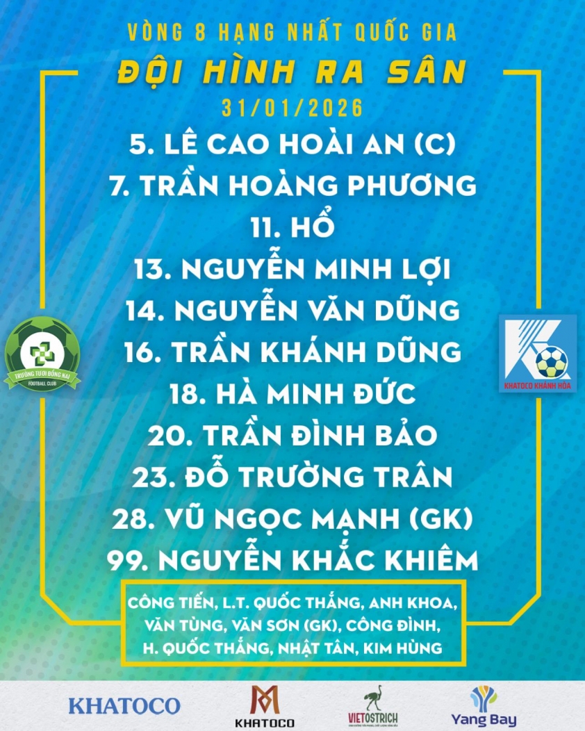 Đội hình ra sân dự kiến Đồng Nai vs Khánh Hòa: