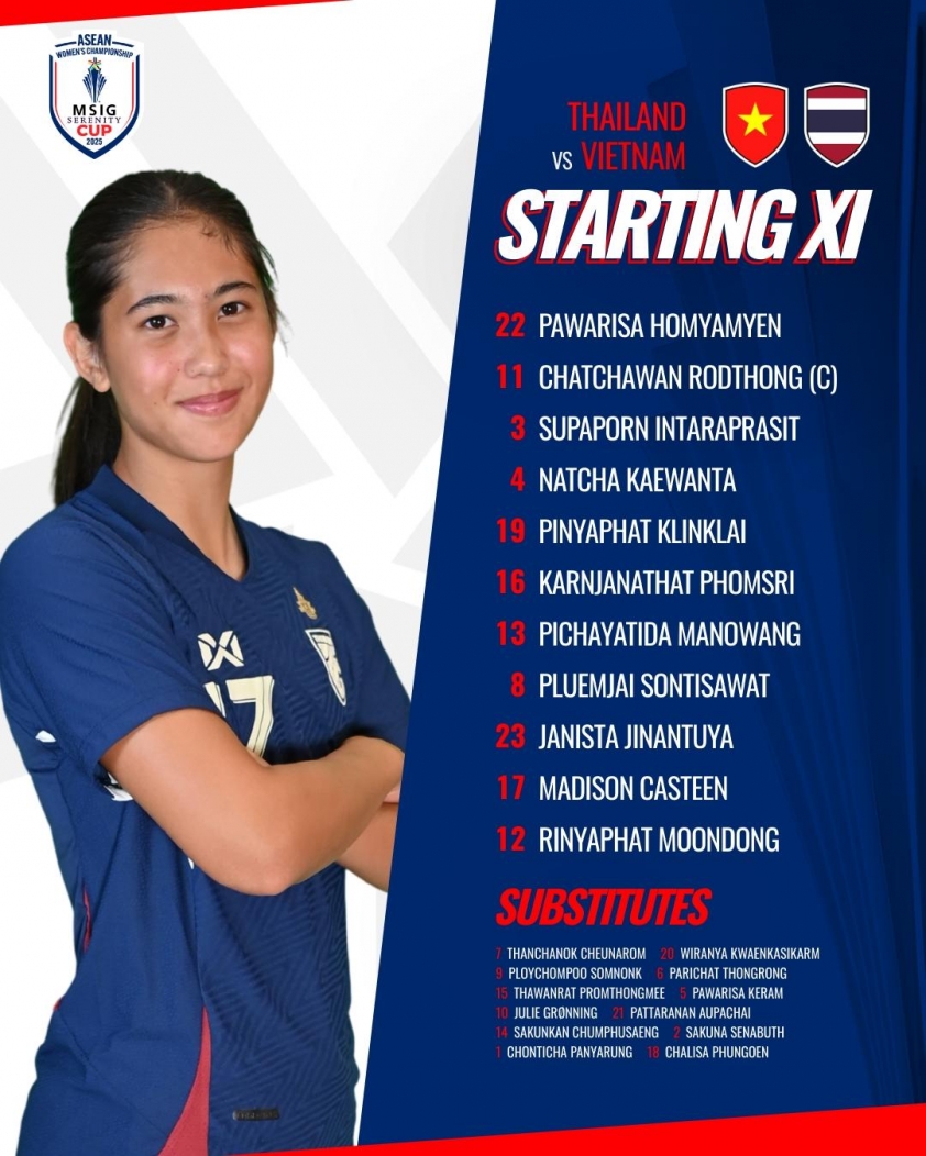 - Nữ Thái Lan: Homyamyen, Kaewnta, Intaraprasit, Klinklai, Rodthong, Phomsri, Manowang, Sontisawat, Jinantuya, Casteen, Moondong.