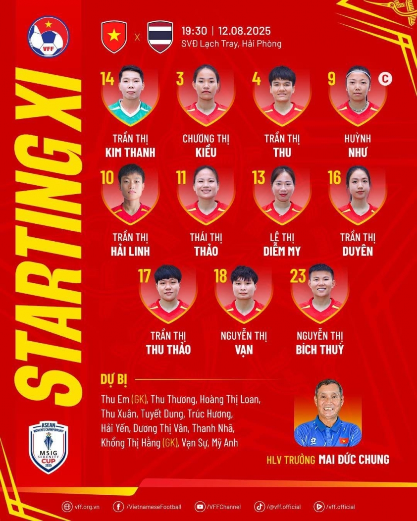 Đội hình dự kiến trận Nữ Việt Nam vs Nữ Thái Lan
