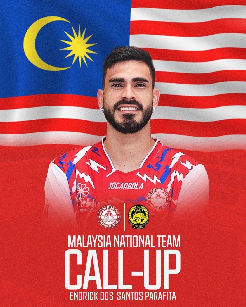 CLB TP HCM thông báo Endrick dos Santos đã được triệu tập lên ĐT Malaysia trong tháng 9 này.