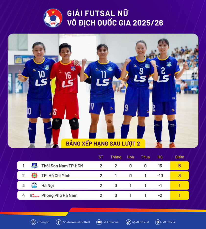 Ở trận đấu còn lại trong ngày, Thái Sơn Nam TP HCM thể hiện sức mạnh vượt trội khi giành chiến thắng đậm trước CLB nữ TP HCM. Đội bóng áo vàng dẫn trước tới 5-0 ngay trong hiệp 1 và khép lại trận đấu với thắng lợi 11-0. Với kết quả này, Thái Sơn Nam TP HCM tiếp tục dẫn đầu bảng xếp hạng với hai trận toàn thắng. CLB nữ TP HCM tạm xếp thứ hai với 3 điểm sau hai lượt trận.