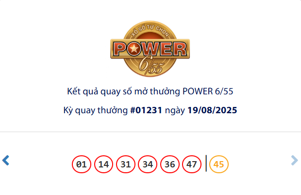 Vietlott 19/8/2025 - Kết quả xổ số Vietlott Mega 6/55 ngày 19/8/2025
